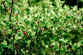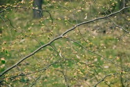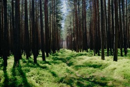 Der nächste Wegabschnitt führt durch einen Blaubeerwald. Kleine noch rosafarbene Beeren lugen unter leuchtend grünen Blättern hervor. Beim Picknick auf dem Boden hören wir Bienen und Hummeln summen. Ein Stück weiter glitzert rechter Hand in einiger Entfernung der Plasterinsee zwischen den Kiefernstämmen hindurch. Am Lutowsee liegt das Dörfchen Herzwolde, an dessen Ortsausgang sich ein schöner Rastplatz befindet, den wir uns für das nächste Mal merken. Auf einer Fahrspur aus Betonplatten gelangen wir in den Wald hinein. Als wir kurze Zeit später links abbiegen lichten sich die Stämme, und wir rascheln durch Buchenlaub aus dem letzten Herbst, während gleichzeitig das neue Grün junger Blätter schon an den Zweigen blitzt. An einem birkenbestandenen Moor verlassen wir den Müritz-Nationalparkweg und laufen ohne die Markierung auf Forstwegen weiter.