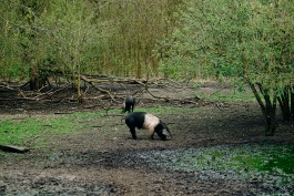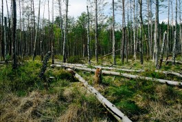 Am Nachmittag gönnen wir uns an einem besonders schönen Ort ein Schläfchen in der Sonne. Auf einer kleinen Lichtung steht ein riesiger Weißdornbusch, der die Luft mit seinem süßlichen Aroma erfüllt. Ein toller Platz zum Verweilen. Zwei Spaziergänger weisen uns darauf hin, dass direkt hinter dem Busch die Überreste der Willerts Mühle zu finden sind, die hier lange Zeit wirtschaftete bis das Gebäude nach dem 2. Weltkrieg verfiel. Mit der alten Goldenbaumer Landstraße passieren wir gleich um die Ecke gleich noch ein Zeugnis der Vergangenheit. Die Pflastersteine, auf denen wir laufen, gehören zu diesem alten Postweg. Am Ostufer des Schweingartensees liegt ein Wegstück so nah am See, dass es etwas unter Wasser steht und wir über Holzstämme balancieren um unsere Strecke trockenen Fußes fortsetzen zu können. Ab hier ist der Wald von kleineren und größeren Mooren durchzogen, insgesamt führt der Weg an fünf oder sechs Sumpfflächen vorbei.