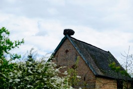 Mit grauem Himmel und von Zeit zu Zeit auch etwas Regen erfüllt dieser vorletzte Apriltag zuverlässig sein Klischee. Trotzdem begeistert uns die sanfte Landschaft, in der sich offenes Feld und kleinere Waldstücke abwechseln, als wir oberhalb des Woblitzsees in nordöstlicher Richtung starten. Beim Campingplatz Havelberge geht es ein Stück direkt am Ufer des Sees entlang bevor wir nach Groß Quassow abbiegen. Dort thront direkt am Ortseingang ein Storchennest auf einem Scheunendach, an der Infotafel lesen wir ab, in welchen Jahren die Störche ihr Nest hier bezogen haben und wieviele Junge sie jedes Jahr hatten.