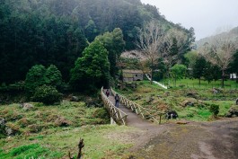 São Miguel merkt man seine vulkanische Beschaffenheit nicht nur landschaftlich an. An mehreren Orten gibt es Fumarolen — dampfende Stellen in der Erde, in denen sogar gekocht wird. In Thermalbädern und angelegten Naturbadestellen tritt das heiße, eisenhaltige Wasser aus der Erde. Wir haben sowohl in den kleinen Becken im Wald der Caldeira Velha gebadet als auch die große Anlage im auch sonst beeindruckend schönen Terra Nostra Park durchschwommen.